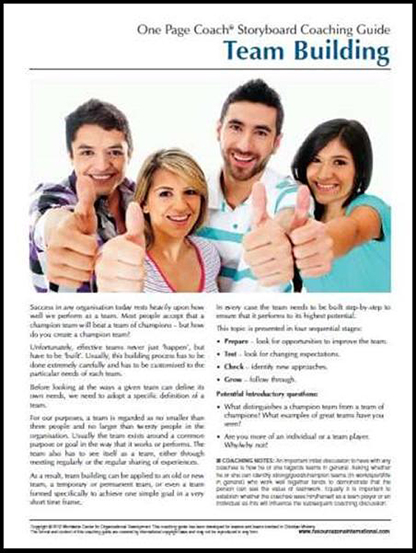 This resource is a PDF downloadable file intended for the use of the purchaser. It also includes a complimentary copy of the accompanying Ministry-Specific Team Building Storyboard. Please purchase reprint permission if you wish to make multiple copies of the Storyboard for your Coachees.